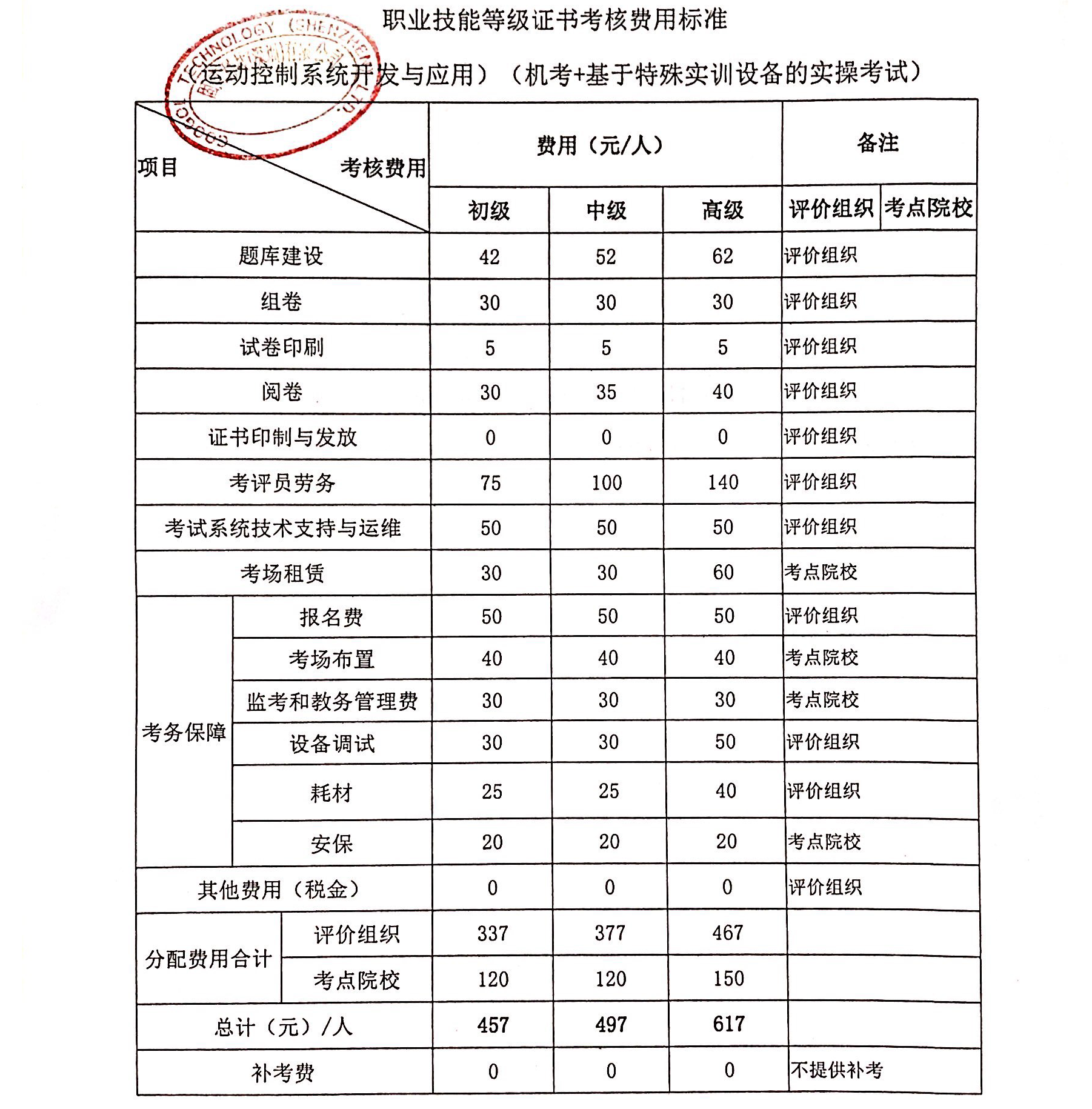 运动控制系统开发与应用职业技能等级证书考核费用成本核算情况的说明