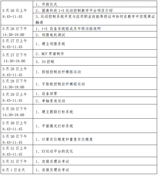 1+X”运动控制系统开发与应用职业技能等级证书(中级)考评员培训课程表 (二零二一年第四期)