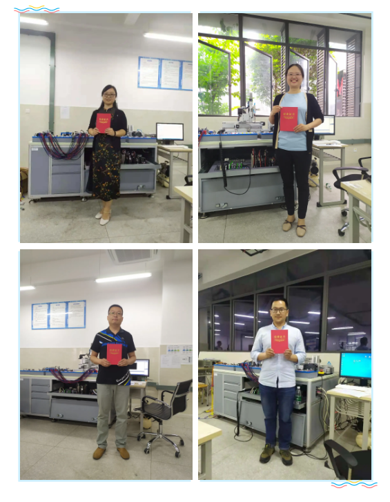学员们在培训学习期间,自觉遵守规章制度,认真学习,积极参加实操训练,培训结束后参培人员进行了理论考核和实操考核。考核成绩合格后获得固高科技(深圳)有限公司职业技能等级相应等级师资证书。成绩优异者获得“1+X”运动控制系统开发与应用职业技能等级证书相应等级考评员证书。